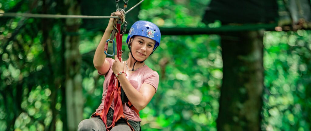 The best zipline adventure, views, and adrenaline. You will go through 7 lines of canopy, experience the landscape in the treetops on Rio Celeste, and observe sloths. Additionally, you’ll enjoy 3 lines over the beautiful river of crystal clear water. Our tour is guided by professional guides, prioritizing safety and quality. With a small, special, and unique canopy tour in Rio Celeste, Costa Rica, it’s an unmissable visit for your trip to Costa Rica.